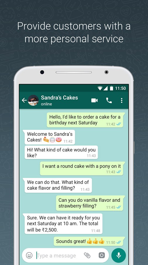 - Say after placing the Order you want your customer to receive updates on how the order is proceeding, forget all the expensive text message plans with WhatsApp business you can do that over your internet connection and this is hassle-free as your customer would get all their updates under one application and saves a load of work at your end.
